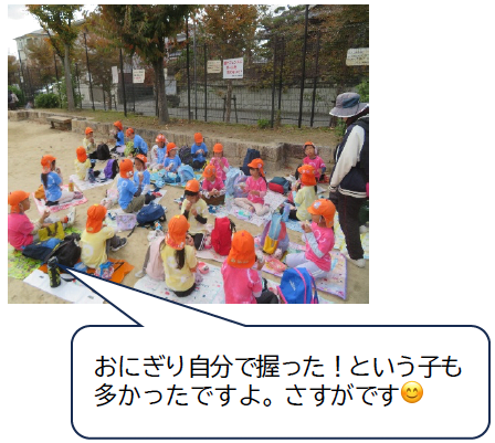 おにぎりを食べてから、公園でいっぱい遊びました。