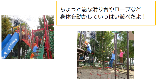 おもしろい遊具にワクワク😊 疲れも見せずに楽しそうな5歳児です。帰りは歩いて帰ってきました! おにぎりのご用意ありがとうございました🍙