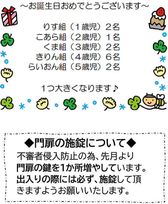 また、今年度も園への多大なるご理解とご協力をいただき深く感謝申し上げます。